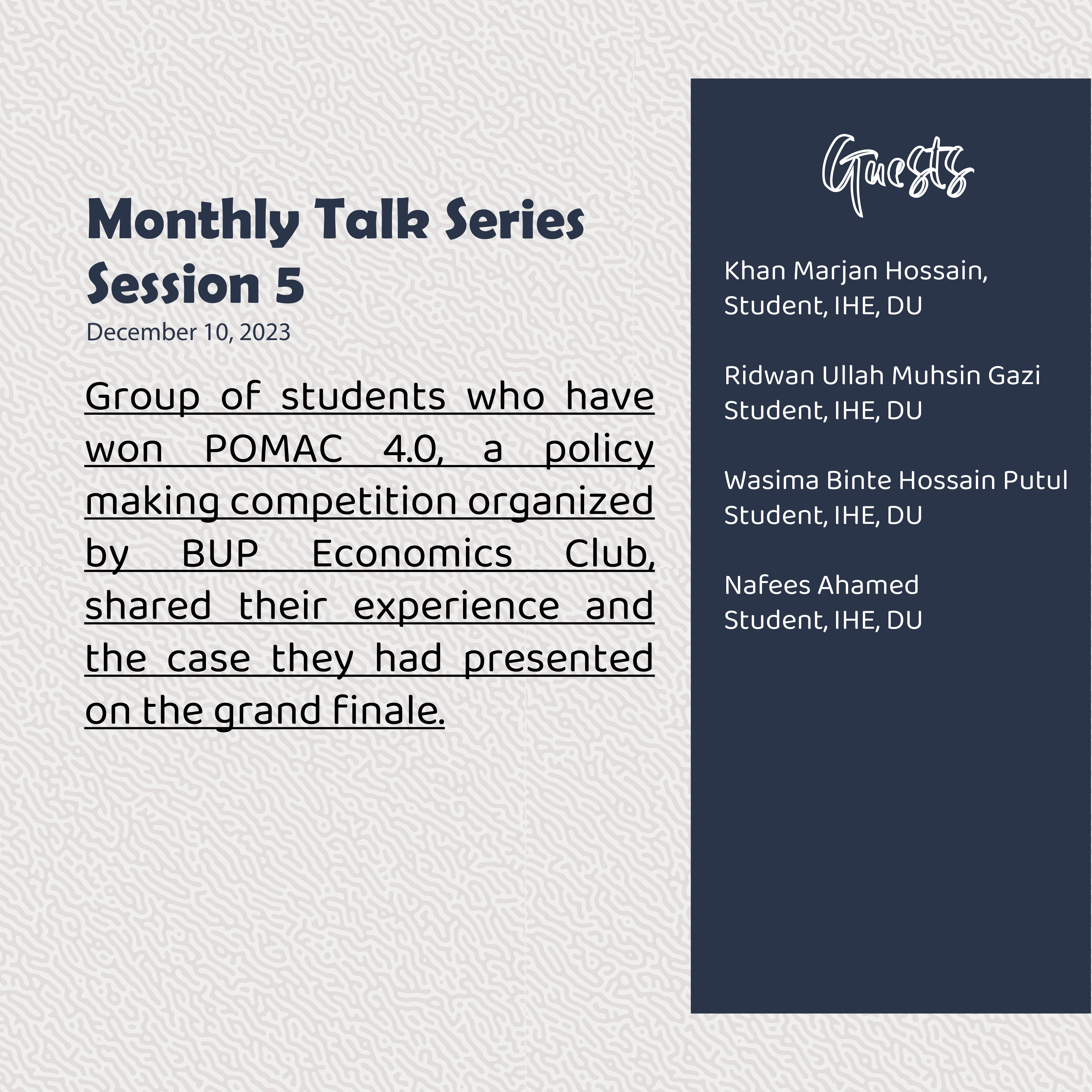 Monthly Talk Series, Session 5