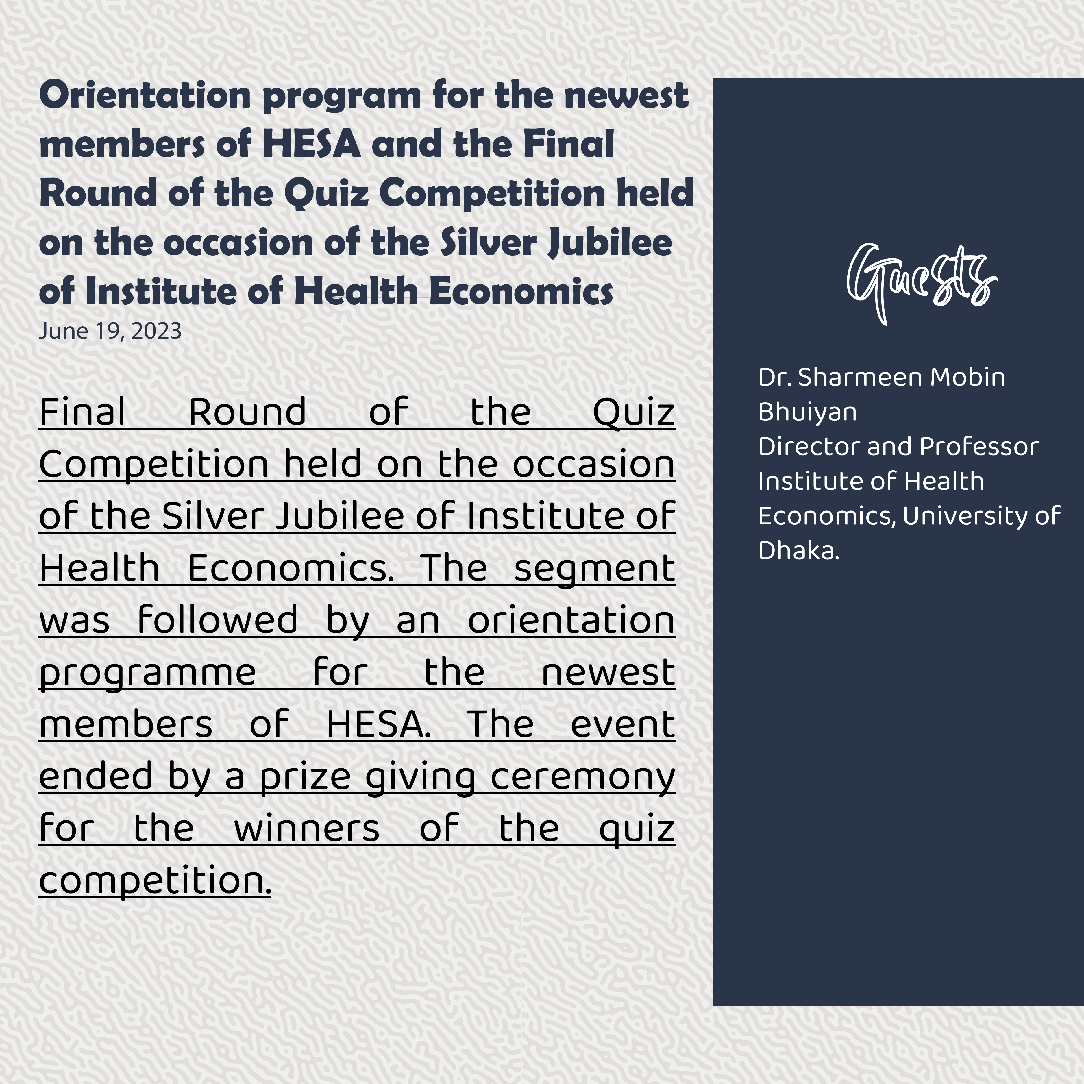 Quiz Program on 25th Founding Anniversary of Health Economics Institute